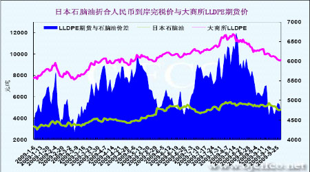 圖六 日本石腦油折合人民幣到岸完稅價與大商所LLDPE期貨價走勢圖