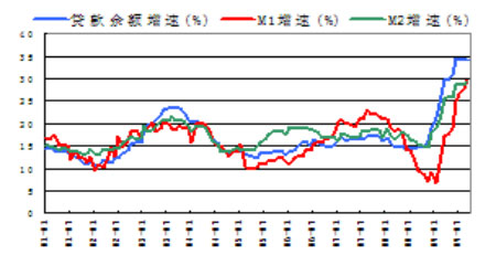 圖5:貸款余額增速與M1、M2增速圖