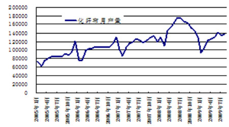 由上圖可以看出,08年以前,我國化纖布產量一般在11-12月份生產達到頂峰,然后回出現大幅回落,由于PTA是其產業鏈上游,波動要提前1個月左右。08年由于經濟過熱,產量出現大量上升,今年可能在經濟回落后重新回歸季節性波動。