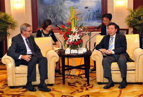 10月23日,蘇州市委常委、副市長周偉強在香格里拉大酒店會見了美國PPG工業公司董事會主席兼首席執行官查爾斯先生一行,高新區管委會副主任王藹先會見時在座。