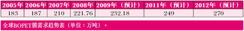 全球BOPET膜需求趨勢表(單位:萬噸)
