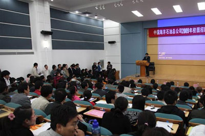 中國北京消息,10月23日晚,中國海洋石油公司校園招聘宣講會在北京化工大學逸夫會議中心三層學術報告廳舉行,有近千人現場聽取了此次招聘宣講。次日,中海油對北京化工大學畢業生進行了選拔面試。中海油招聘宣講團一行由中國海洋石油總公司人力資源部副總經理陳和志帶隊,此次來校企業包括了中海油中下游主干企業:中海油煉化銷售事業部、中海油氣開發利用公司、中海油銷售分公司、中海油能源發展公司、海油發展石化分公司等單位。