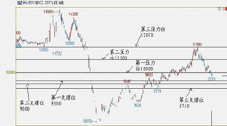 技術上看,連塑在觸及萬二關口后回落,在跌破11000整數關口后跌勢加速,并一舉跌破萬元關口支撐,在前期低點9750附近將有反復,但期價始終保持在8月中旬以來的下跌通道中,在基本面缺乏明顯支撐的情況下,連塑仍有望進一步下探,10月底11月初期價有望形成第四季度的低點,第一支撐位9500,第二支撐位9000,11月以后,隨著原油需求的復蘇,連塑有望反彈,但上方萬元及11000都將是壓力,反彈力度還取決于后期整個宏觀經濟走勢。