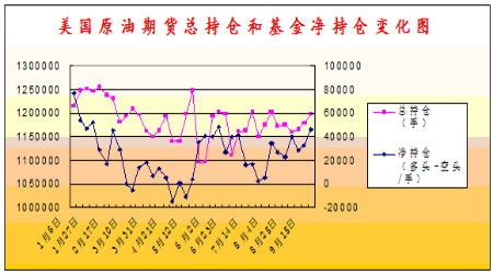 一系列的措施使得投機機構噤若寒蟬,這也是導致原油期價從6月30日以后下跌并擊穿60美元重要支撐位的一個重要原因。不過,隨著最近油價在高位振蕩,總持倉和投機基金凈持倉有逐步增加的趨勢,面對前期高點,投機者們有意一搏。