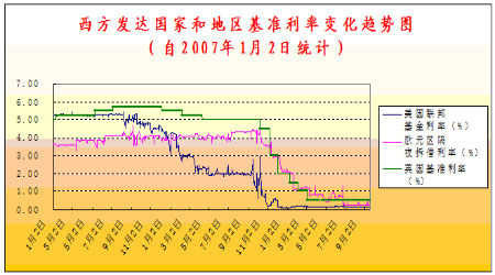 圖為西方發(fā)達(dá)國(guó)家和地區(qū)基準(zhǔn)利率走勢(shì)圖。(圖片來源:Wind資訊)