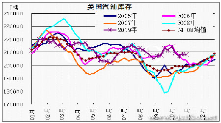 圖為美國汽油庫存走勢圖。(圖片來源:北京中期)