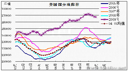圖為美國餾分油庫存走勢圖。(圖片來源:北京中期)