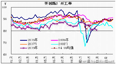 圖為美國煉廠開工率走勢圖。(圖片來源:北京中期)