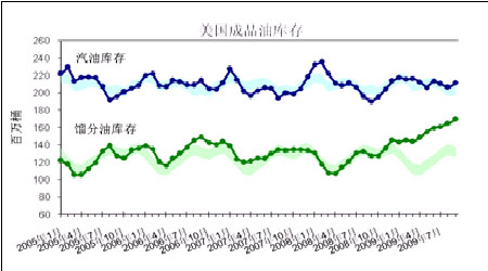 目前美國原油庫存3.374億桶,連續5個月下滑,但仍高出正常水平。而成品油庫存則出現了反彈,因目前正是油品消費青黃不接的季節。汽油庫存2.144億桶,位于過去五年均值之上;餾分油庫存1.717億桶,連續6個月上升并遠遠高出過去五年均值水平。整體上看,美國原油庫存的下滑主要源于進口量的減少,實際的原油需求并未見好轉,居高不下的油品庫存仍是目前制約油價上漲的主要因素。在第四季度,隨著冬季的到來,取暖油的需求將逐步走強,餾分油庫存連續上揚的態勢有望得到遏制,原油庫存有望大幅下降。
