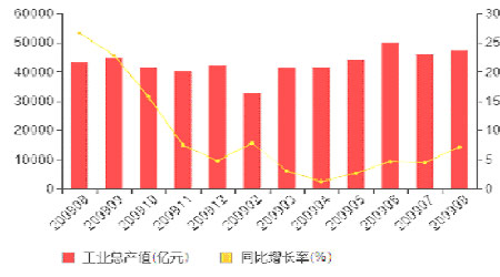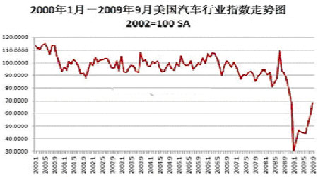 圖為美國2000年1月-2009年9月汽車行業指數走勢圖。(圖片來源:格林期貨)