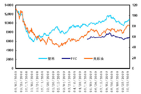 圖為PVC、塑料及原油價格走勢分布圖。(圖片來源:北京中期)
