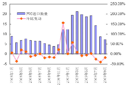 圖為PVC2009月度表觀消費及環(huán)比變動圖。(圖片來源:北京中期)