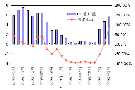 2、PVC出口狀況 9月出口大幅增加,出口態(tài)勢好轉(zhuǎn)