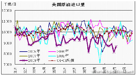 圖為美國原油進口量走勢圖。(圖片來源:北京中期)