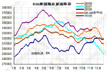 圖為EIA美國商業(yè)原油庫存走勢圖。(圖片來源:西南期貨)
