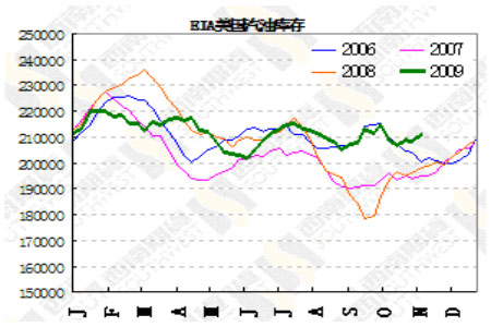 圖為EIA美國汽油庫存走勢圖。(圖片來源:西南期貨)