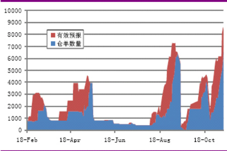 圖為PTA 倉單走勢圖。(圖片來源:光大期貨)