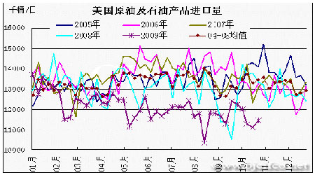 圖為美國原油及石油產品進口量走勢圖。(圖片來源:北京中期)