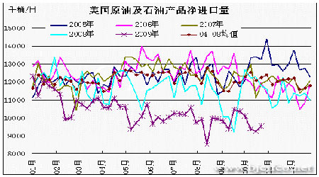 圖為美國原油及石油產品凈進口量走勢圖。(圖片來源:北京中期)