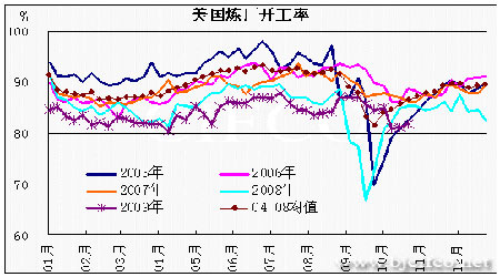 圖為美國煉廠開工率走勢圖。(圖片來源:北京中期)