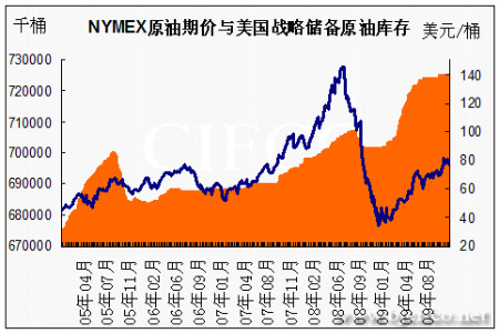 圖為NYMEX原油期價與美國戰略儲備原油庫存走勢圖。(圖片來源:北京中期)
