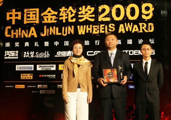 《汽車導報-改裝與四驅》主編陳剛以及國內著名汽車節目主持人張海寧主持了這次輪胎業界里最權威的獎項頒發。首先揭曉“營銷創新大獎”和“網絡人氣大獎”。固鉑輪胎因為其“80后式”(固鉑輪胎發言嘉賓唐鳳靜語)的特色行銷,獲得營銷創新大獎。錦湖輪胎憑借其在國內賽事的投入積累起相當高的人氣,獲得網絡人氣大獎。兩個獎之后,便是中國金輪獎2009“十佳輪胎”,這個獎項全面地對入選輪胎的綜合表現進行評判。分別由普利司通Dueler H/P Sport、固鉑Zeon CS6、鄧祿普Grandtrek AT20、飛勁ZE912、佳通 GitiComfort 228、固特異Wrangler AT/SA、韓泰Ventus S1 evo、米其林博悅、東洋DRB、萬力AP028獲得。最后,最吸引眼球的“編輯推薦獎”揭曉,除了駕駛方面的真實表現之外,此獎評選還加強參考性能、技術和設計等方面的 “硬數據”。固特異Eagle F1 Asymmetric在各項測試中的出色表現為其賺足了分數,獲得此獎可謂實至名歸。