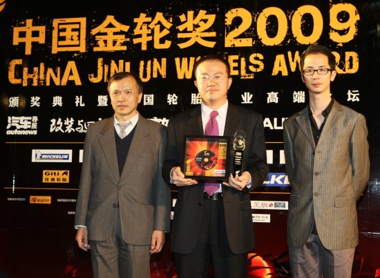 十佳輪胎-米其林博悅,領獎嘉賓-米其林南大區銷售經理李光偉先生,頒獎嘉賓-清華大學宋健教授及《汽車導報》綜合版執行主編李曄先生。