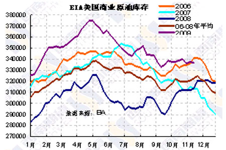 圖為EIA美國商業原油庫存走勢圖。(圖片來源:西南期貨)