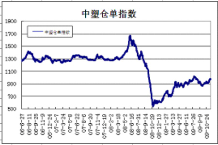 圖為中塑倉(cāng)單指數(shù)走勢(shì)圖。(圖片來(lái)源:中瑞金融)
