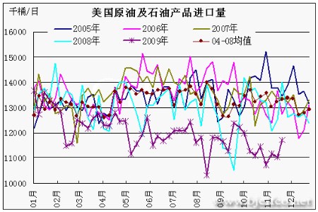 圖為美國原油及石油產品進口量走勢圖。(圖片來源:北京中期)