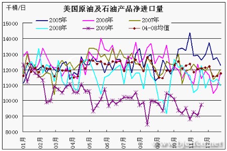 圖為美國原油及石油產品凈進口量走勢圖。(圖片來源:北京中期)