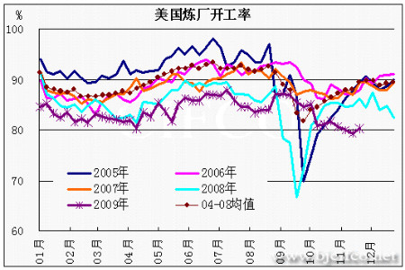 圖為美國煉廠開工率走勢圖。(圖片來源:北京中期)