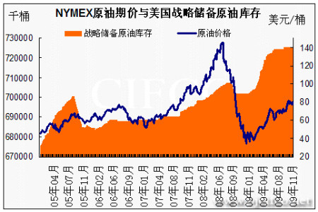 圖為NYMEX原油期價與美國戰略儲備原油庫存走勢圖。(圖片來源:北京中期)