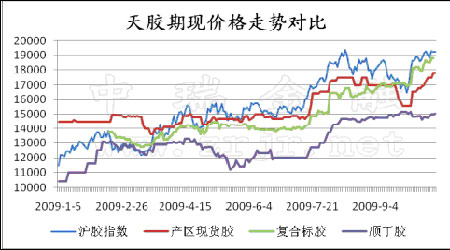 圖為天膠期現價格走勢對比圖。(圖片來源:中瑞金融)