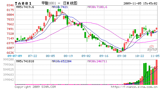 基本面看,短期受上游PX大幅下挫,國內PTA貨源充裕和下游觀望不接貨打壓,短期估計仍將下跌,但隨著經濟復蘇更加明朗,原油突破上漲和PX、PTA減產,終端織布廠進場采購,或使PTA震蕩走高。
