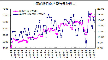 國內輪胎產量自6月份已經開始出現下滑的態勢,而且受輪胎特保案的影響,預計第四季度傳統的輪胎生產旺季也將較往年明顯偏弱。由此可能引發天膠進口量的進一步萎縮,從而延續天膠價格內弱外強的局面。