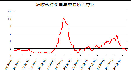 圖為滬膠總持倉量與交易所庫存比走勢圖。(圖片來源:中信建投期貨)