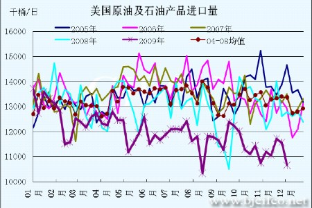 圖為美國原油及石油產品進口量走勢圖。(圖片來源:北京中期)