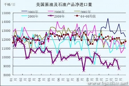 圖為美國原油及石油產品凈進口量走勢圖。(圖片來源:北京中期)