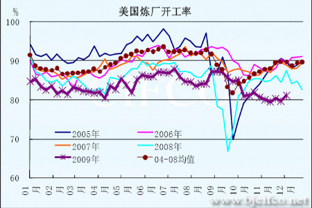 圖為美國煉廠開工率走勢圖。(圖片來源:北京中期)