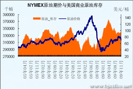圖為NYMEX原油期價與美國商業原油庫存走勢圖。(圖片來源:北京中期)