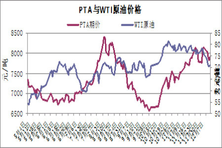 圖為PTA與WTI原油價格走勢圖。(圖片來源:中信建投期貨)