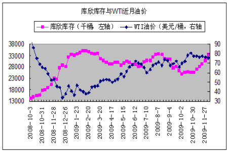 圖為庫欣庫存與WTI近月油價走勢圖。(圖片來源:光大期貨)