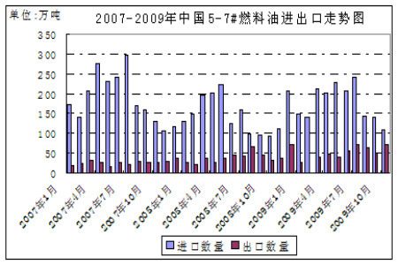 圖為中國5-7#燃料油進出口走勢圖。(圖片來源:光大期貨)
