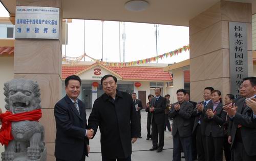 近日,中國化工橡膠桂林有限公司高等級子午線輪胎產業化項目指揮部揭牌儀式在桂林蘇橋工業園隆重舉行,中國化工橡膠桂林公司總經理王繼澤及蘇橋園公司領導等參加會議。