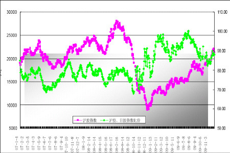 11 月份,由于美元指數(shù)持續(xù)走低,再加投資者對通貨膨脹的擔(dān)憂,國際商品大部分呈上漲之勢,而其中又以黃金的表現(xiàn)最為耀眼,紐約金12 月合約月上漲132 美元,漲幅達12.7%。國內(nèi)商品走勢也不甘落后,特別是金屬板塊,紛紛刷新年內(nèi)高點。進入11 月份后,滬膠的表現(xiàn)亦是可圈可點,在經(jīng)過5 個多周的橫盤整理后,11 月中旬資金重新回歸橡膠市場,并展開一波快速上漲行情。當(dāng)前主力1003 合約最高至22415 元/噸,27 日收盤至每噸21235 元,月上漲1480 元,漲幅達7.49%,成交達1162.7 萬手,持倉為154860 手。TOCOM 橡膠期貨11 月也出現(xiàn)上漲,連續(xù)創(chuàng)出年內(nèi)新高,并一度站上250 日元/公斤上方。基準(zhǔn)4 月合約最高至253.5 日元/公斤,月末收盤報242.8 日元/公斤,較10 月上漲11.5 日元,上漲幅度達4.97%。而且,由于滬膠本月走勢強于日膠,滬膠指數(shù)和日膠指數(shù)的比值也由10 月30 日的84.3 升至11 月27 日的87.9,高于近三年來81 的平均比值。
