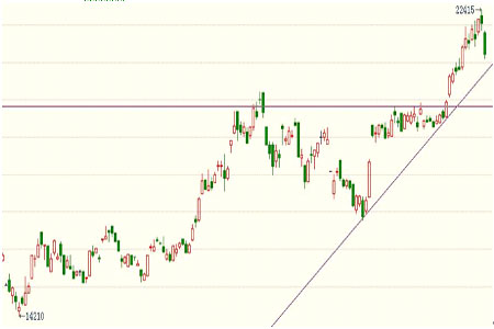 滬膠1003合約本周創(chuàng)出新高后大幅度回調(diào),雖然疑受迪拜危機影響較大,這一危機可能在短期內(nèi)就將過去,但短期內(nèi)國內(nèi)商品期貨市場資金退出跡象明顯,出現(xiàn)大行情的可能性減少,因此短期內(nèi)預(yù)計滬膠將企穩(wěn)后小幅反彈或展開震蕩調(diào)整,待市場預(yù)期明朗后或?qū)⒀永m(xù)多頭行情。若1003合約下周能收復(fù)21400一線,則可進(jìn)行短線多頭操作,目標(biāo)位看近期高點22400附近,區(qū)間操作也是可行的;另一方面若價格跌破趨勢線則可考慮以空頭為主。
