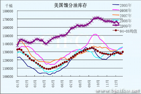 圖為美國餾分油庫存走勢圖。(圖片來源:北京中期)
