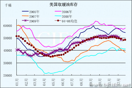 圖為美國取暖油庫存走勢圖。(圖片來源:北京中期)