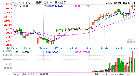 可現(xiàn)在的情況是,紐約原油價(jià)格已于10月21日出現(xiàn)一高點(diǎn)82美元/桶,至12月14日已經(jīng)下跌至68.59美元/桶;而同一時(shí)間里上海天膠不僅沒(méi)有下跌,相反卻不斷地上漲,從18850元/噸上漲至12月18日23335元/噸。前者跌幅達(dá)到16.35%,而后者漲幅則高達(dá)23.8%,反差之大,令人嘆為觀止!上海天膠當(dāng)前的價(jià)位水平已與100—120美元/噸時(shí)的原油價(jià)位相當(dāng)。不過(guò),上海天膠繼續(xù)上漲運(yùn)動(dòng)態(tài)勢(shì),似乎仍然沒(méi)有結(jié)束。